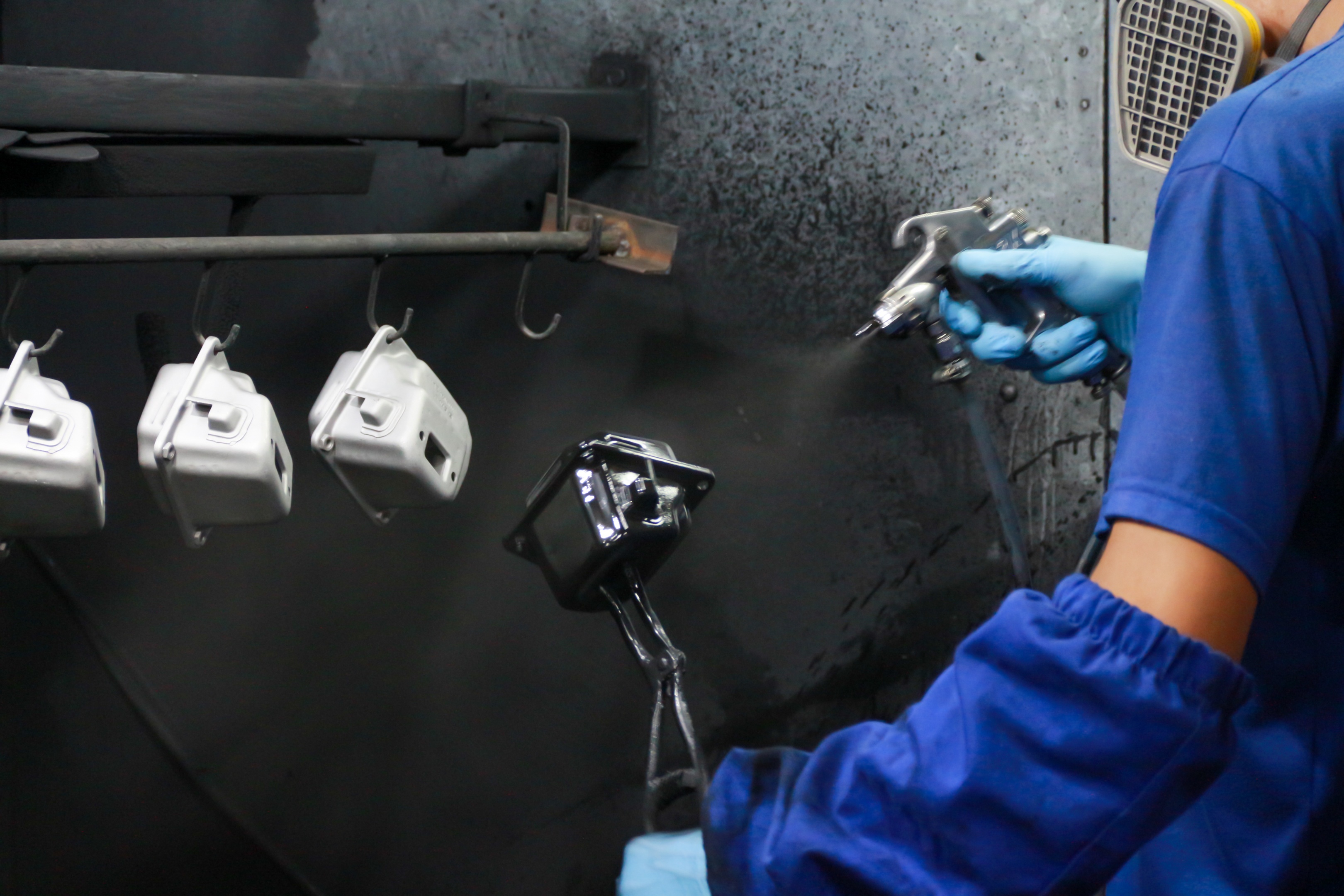 processo de pintura líquida conta com sistema de filtro seco e estufa de cura,